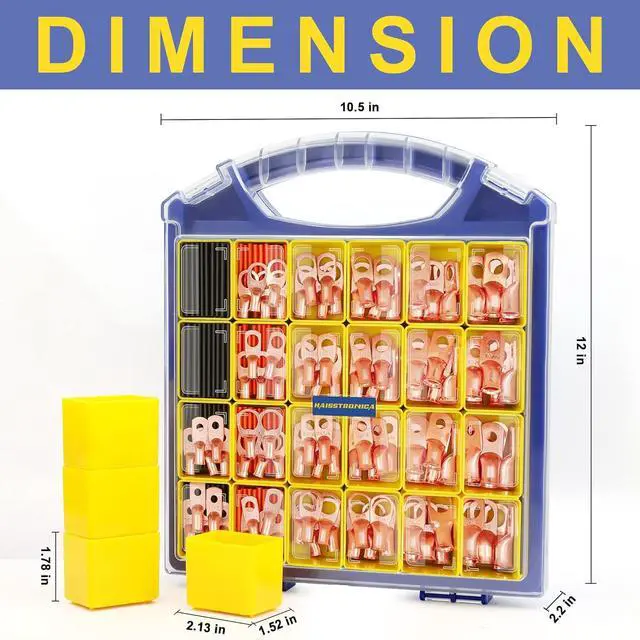 UNIQUE PACKAGING:The patented haisstronica tool box is easy to carry and has a clear view of the internal display.Each small part of the organizer is more convenient for your storage.Also battery cable lugs has a specification mark,so you can quickly find the correct marine battery terminals