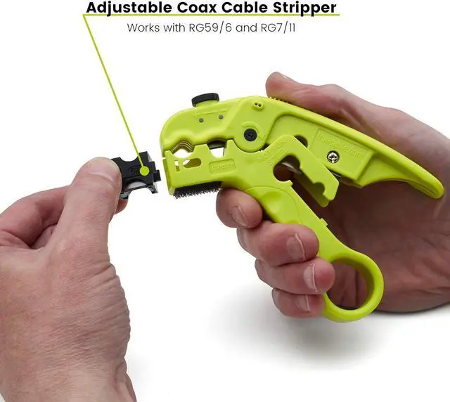 VERSATILE. Strip Ethernet cable jackets from Cat3 through Cat6A. Strip and prep coaxial cable from RG59/6 through RG7/11. Infinitely adjustable strip depth for the perfect score on the cable jacket.