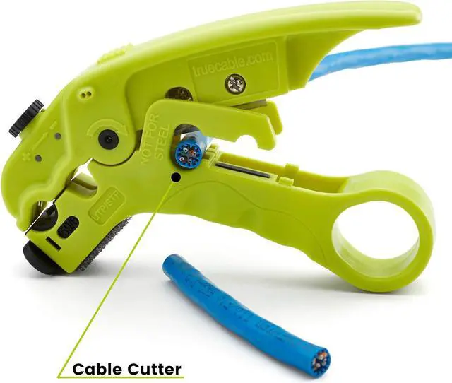 PROFESSIONAL GRADE. Constructed from high strength ABS plastic with long life springs. Replaceable coaxial cable blade cassettes extend the lifetime of the tool.
