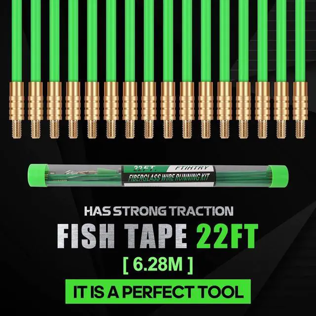 This 22'fiberglass running wire cable electrical fish tape kit is made of fiberglass material, low friction design allows the tape to easily glide through the conduit without binding at turns, joints or couplings.