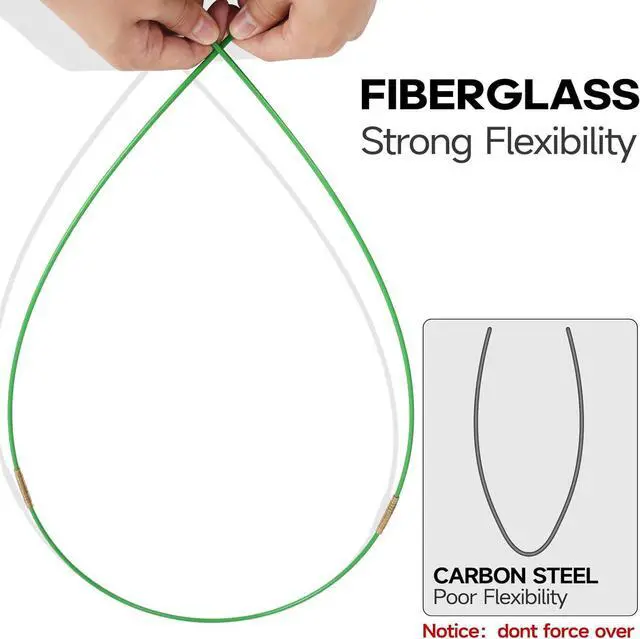 This fish tape kit is flexibility(don't over force), rigidity and great insulation, wear-resistant,corrosion-resistant and oxidation resistance,The extension rods can be connected together to achieve the required length, extending up to 22 feet(6.7M).