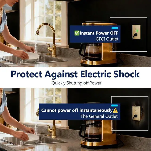 No-False-Trip Performance Enhanced anti-interference design prevents unwanted tripping caused by electrical noise from motors, washers, or exhaust fans. Reliable protection in laundry rooms, kitchens, and utility areas.
