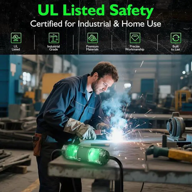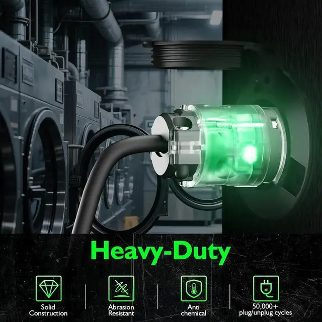 Dual LED Power Flow Indicators: Built-in green neon lights illuminate BOTH plug and connector ends during use, providing instant visual confirmation of active power flow in dark workspaces, construction sites, or marine environments. Ensures safe connections and real-time monitoring for lighted extension cord ends.