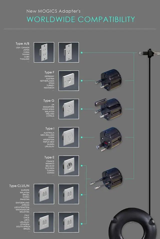 Supports 7 charging ports ( 5 sockets, 2 USBs)