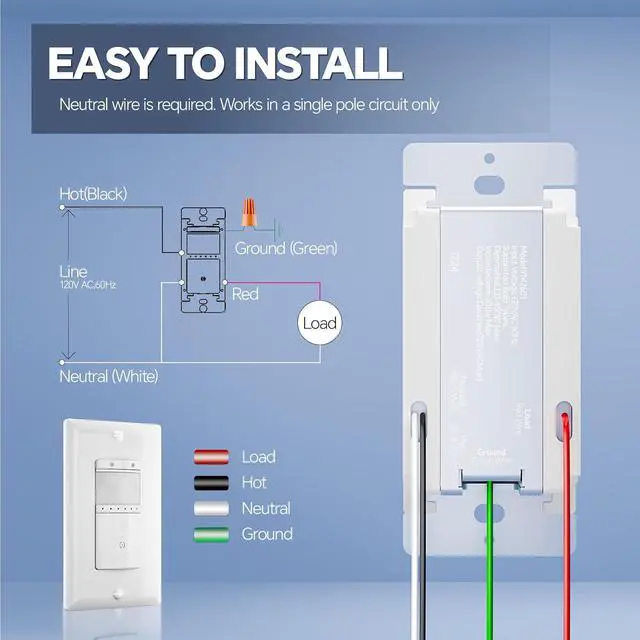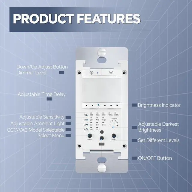 Hands Free Control: Enjoy the convenience of hands-free lighting control. With motion sensor and ambient light sensor, electrical wall switches detects your presence and activates the lights, eliminating the need to search for switches in the dark