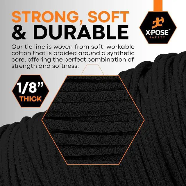 STRONG, SOFT & DURABLE - Our tie line is woven from soft, workable cotton that is braided around a synthetic core, offering the perfect combination of strength and softness. Protect your hands and fingers from rubbing, abrasions and rope burn while you work.