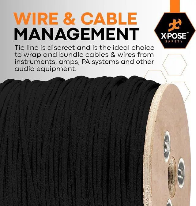 WIRE & CABLE MANAGEMENT - Tie line is discreet and is the ideal choice to wrap and bundle cables & wires from instruments, amps, PA systems and other audio equipment. Safely rig and secure lighting and camera equipment. Perfect for gaffers, grips and stagehands.