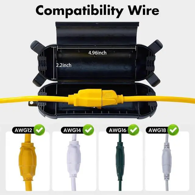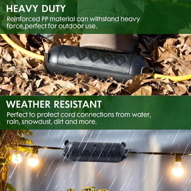 LightWeight: Compact size and light weight are great to protect extension cord connection hanging in the air. Designed with ample space to accommodate various plug and outdoor extension cord sizes, ensuring safe usage.
