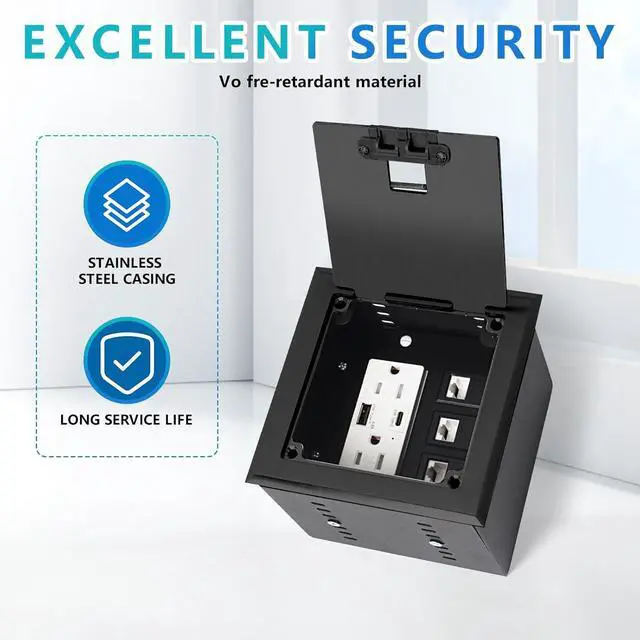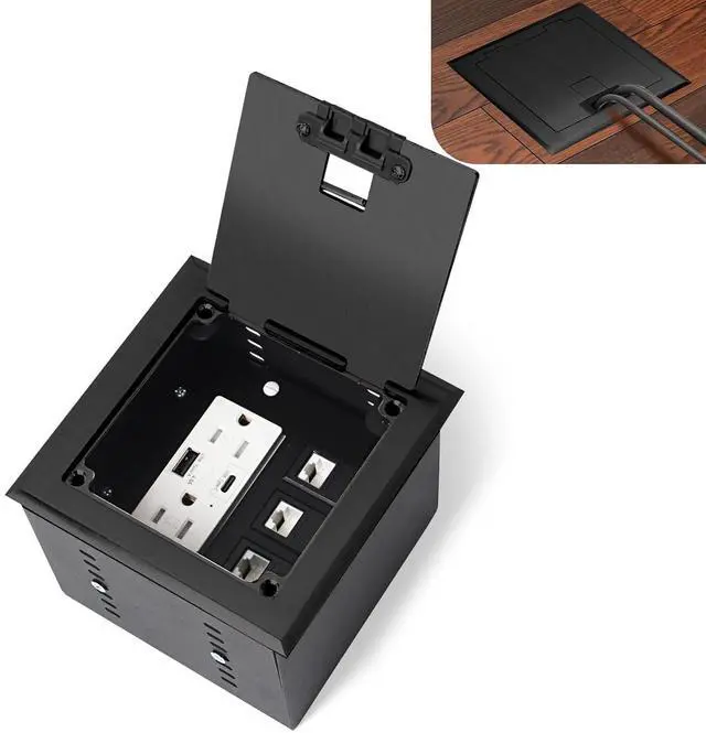Product composition: The recessed flat hidden socket kit includes a hard material top cover , 2 * 15A Receptacle4.8A 1 USB-A Ports &1 USB-C Port+3-Port RJ45 Datacom Receptacle.