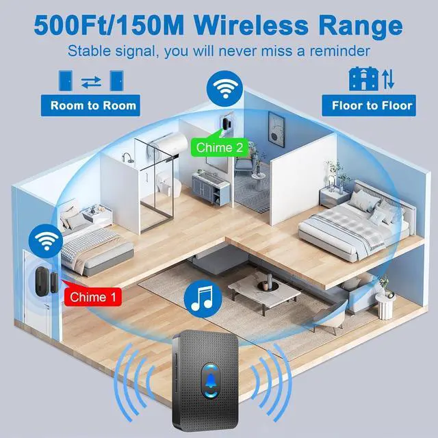 Wide Range of Action: This door open chime has 500ft/150m operating range in open area, enough for to cover every window and door in your house or store. Suitable for small and medium-sized homes, as well as shops and apartments.