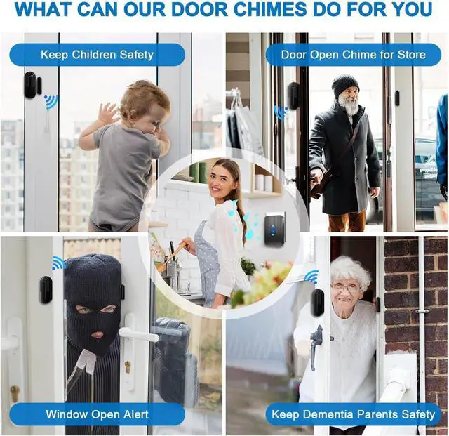 Door Chimes When Door Opens: Wireless door chime is perfect for stores and business operations. You can receive the signal at the counter when the customer entry. Besides, this entry alert chime can be a good reminder for you if your toddler or the elderly with dementia trying to get out of the house.