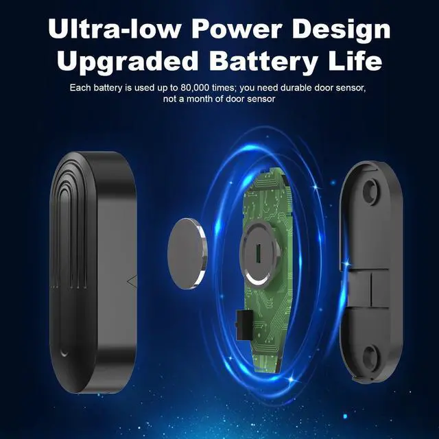 Door Chime with Long Battery LifeThis door sensor chime is designed with ultra-low power consumption, ensuring a longer battery life. It has been professionally tested that a battery can support about 80,000 times of use, equivalent to 3-5 years of life, making it perfect for both household and commercial use. You need a door chime that's built to last, not one that will only work for a month.