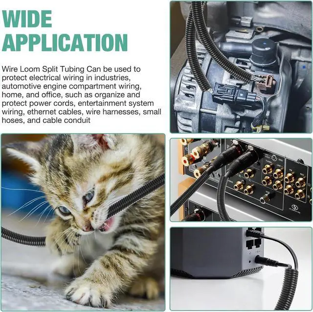 Pet-Proof Protection: Sturdy material withstands wear, tear, and bites, safeguarding your cables from damage by pets. Provides strong protection against harmful chemicals and wear, ensuring your wiring remains intact in harsh conditions