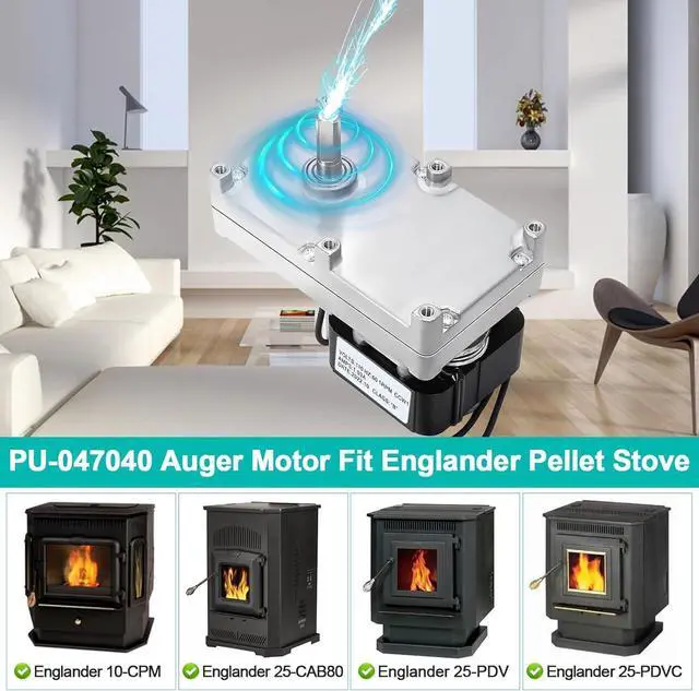 Widely Compatible: PU-047040 Auger Feed Motor Replacement for Englander Pellet Stove Models 10-CPM, 25-CAB80, 25-PAF, 25-PDV, 25-PDVC, 25-PDVE, 25-PDVP, 25-PFS, 25-PI, 55-SHP22E, 49-SHCPM, 49-TRCPM, 55-SHPCAB80, 55-TRPCAB80, 55-SHP22, 55-TRP22, 55-SHP10, 55-SHP10L, 55-TRP10, 25-PFSP, 55-SHP25, 55-TRP25, 55-SHP15, 55-TRP15, 55-SHP20, 55-TRP20.