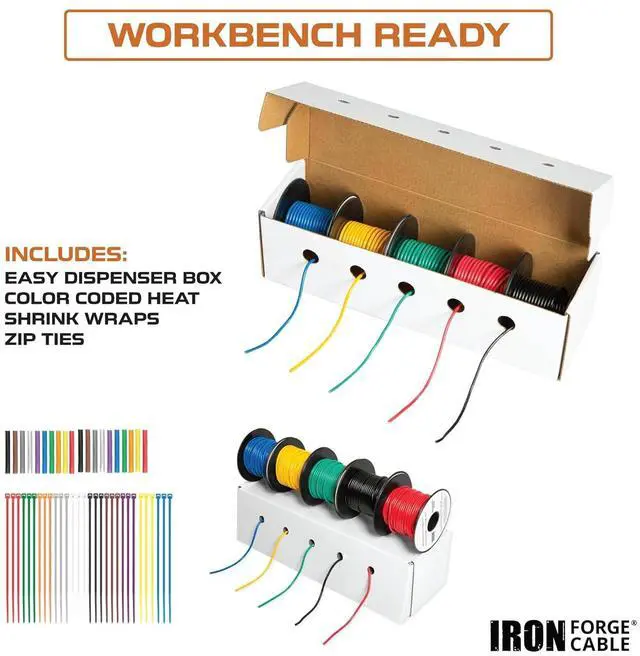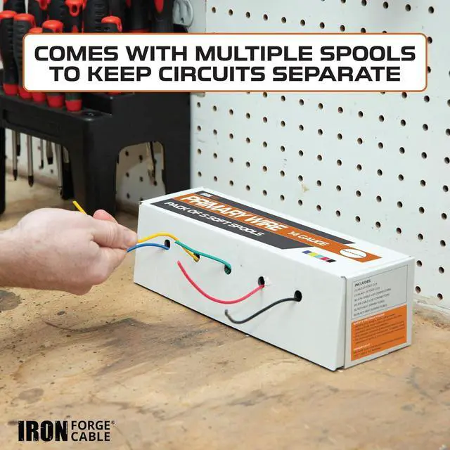 KEEP ORGANIZED: This 14 awg copper wire from Iron Forge Cable comes jacketed in five different colors, making it easy to maintain organization while wiring! Our stranded 14 awg cable is used for various purposes, such as ground wire, welding cable, power cables, vehicle radio, automotive, lighting, indoor lighting.Includes five colors: Blue, Yellow, Green, Red, Black.