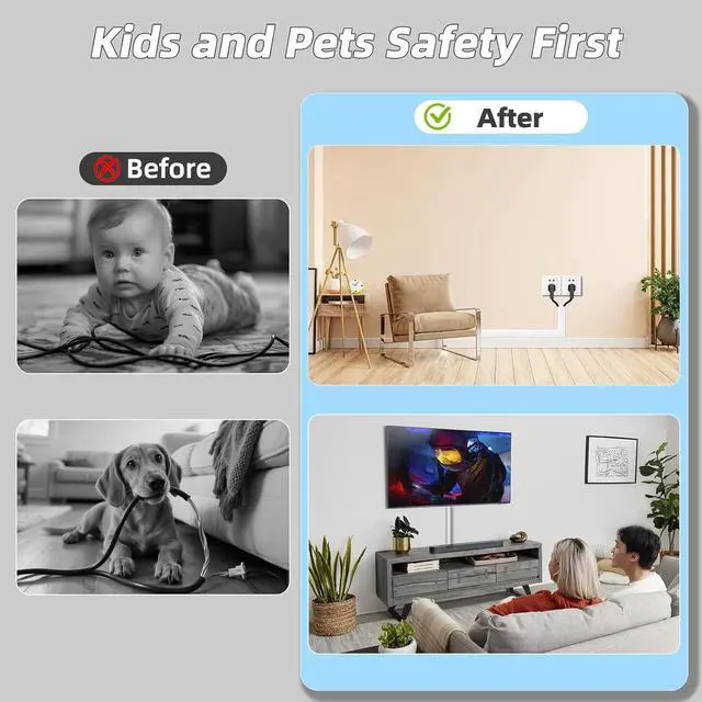 APPEARANCE & SAFETY:Loose cables not only affect appearance but are also more likely to cause pet bites, electric shocks to children, and tripping hazards. Cable raceway helps you easily organize and conceal exposed wires, creating a tidy space while completely isolating curious infants/pets from dangerous contact with cables, making activity spaces safer for children and pets