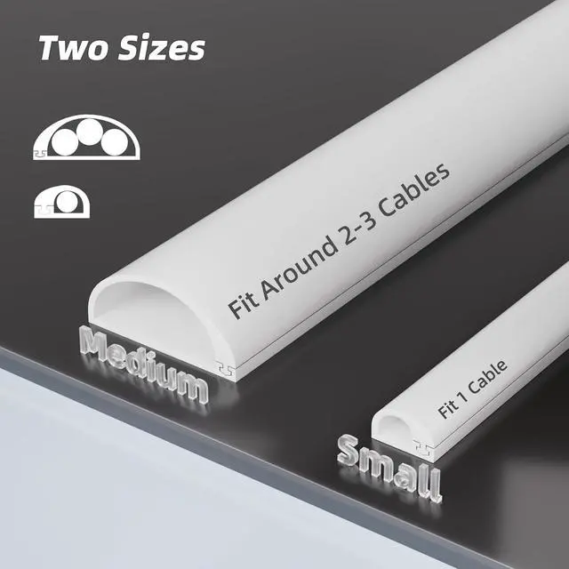 TWO MODELSESUFEIR provides small (S) and medium (M) models to meet differentiated wiring needs. The small model specializes in hiding single wires (<0.27'' diameter). The medium model achieves 2-3 wire parallel management, with its expanded structure effectively preventing wire extrusion deformation and maintaining long-term wire core integrity