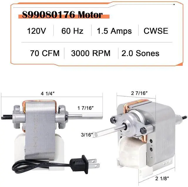 Premium Performance - The broan part s99080176 motor is made of high-quality material, and each motor examnines before leaving factory and strict testing, to ensure a good structure, excellent suction, perfect matching and smooth operation, ensuring that you receive good motor replacement.