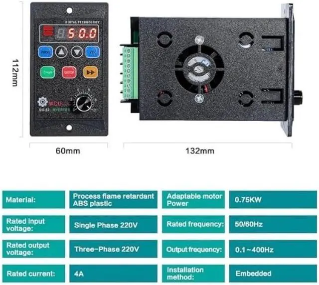 *Energy Efficiency: This single-phase frequency inverter maximizes performance efficiency based on load conditions, reducing motor heat and extending the lifespan of both the motor and the inverter itself.