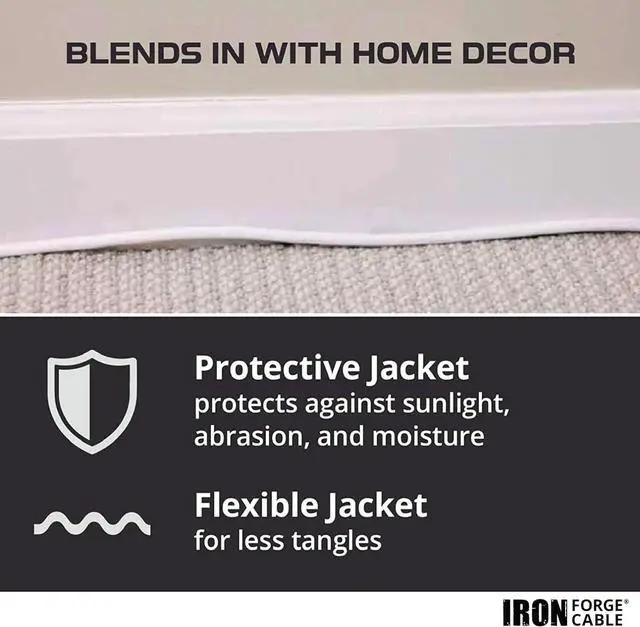3 OUTLETS IN 1: Multiple outlets extension cord for simultaneous multiple use. The white cable blends into your homes decor. BUILT TO LAST - High quality vinyl covering of this plug extender protects cord against moisture, water, snow, abrasion and sunlight. Remain flexible and tangle-free and wouldnt become stiff or crack in cold weather.