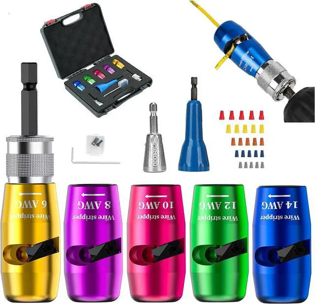 All-in-One ElectricianTool Set: This complete kit has you covered with 5 wire strippers (for 6-14 AWG wires), 1 stripping connecting rod, 2 wire twister connectors, 30 wire nut connectors, 1 replacement blade, and 1 Allen wrench. Perfectly organized in a compact toolboxeverything you need is here for electricians, DIYers, and pros on the go. No more buying separate tools!