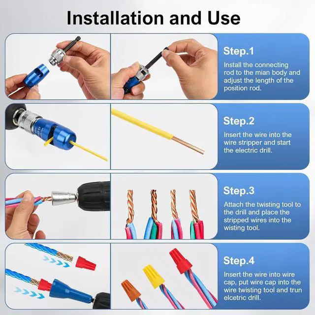 Effortless & Versatile: Both the stripper and twister feature a ¼" hex shank that fits most electric drills. Just snap it in, set your strip length, feed the wire, and goits that simple. For best results, use straight wires. Perfect for electrical, construction, renovation, and DIYeasy for beginners, trusted by pros.