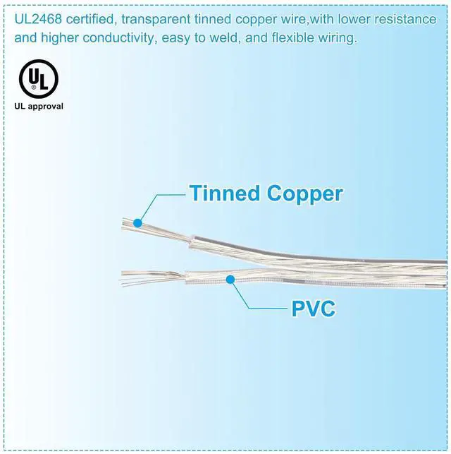 Advantage: UL2468 certified, transparent tinned copper wire, with lower resistance and higher conductivity, easy to connect, and flexible wiring; the wire withstands a voltage of 300V, ensuring safe and reliable operation. Made of good quality PVC material, it has good insulation, is not easy to break, is soft and not easy to knot, and is durable.
