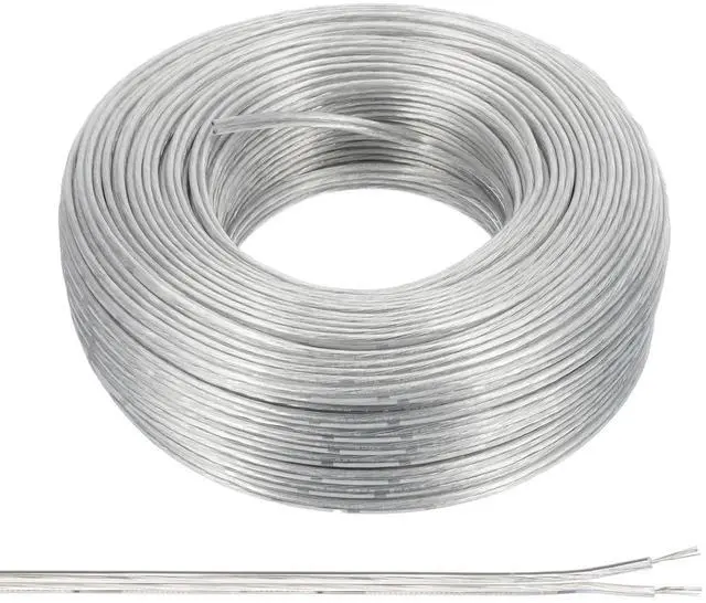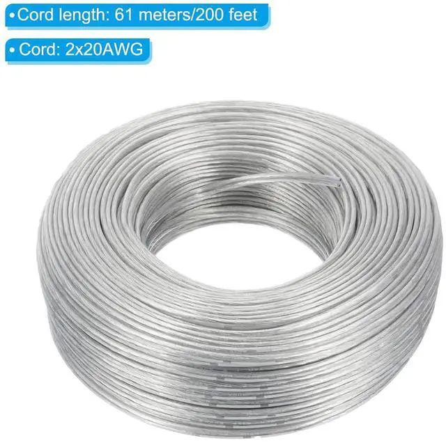 Specification: Material: PVC, Copper; Color: Clear, Silver; Power cord: 2x20AWG; Voltage: 300V; Rated temperature: -20 to 80; Wire outer diameter: 3.7 x 1.7 mm/ 0.15 x 0.07 inch; Cord length: 61 meters/200 feet; Packing list: 1 roll of PVC wrapped wire.