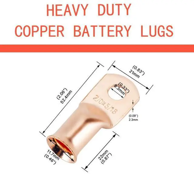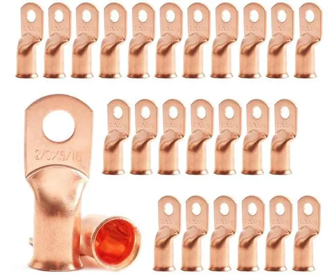 Package Content: 25 PCS. of Bare Copper 2/0 Gauge (AWG) 5/16" Ring battery cable ends.