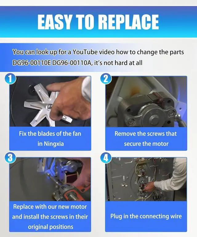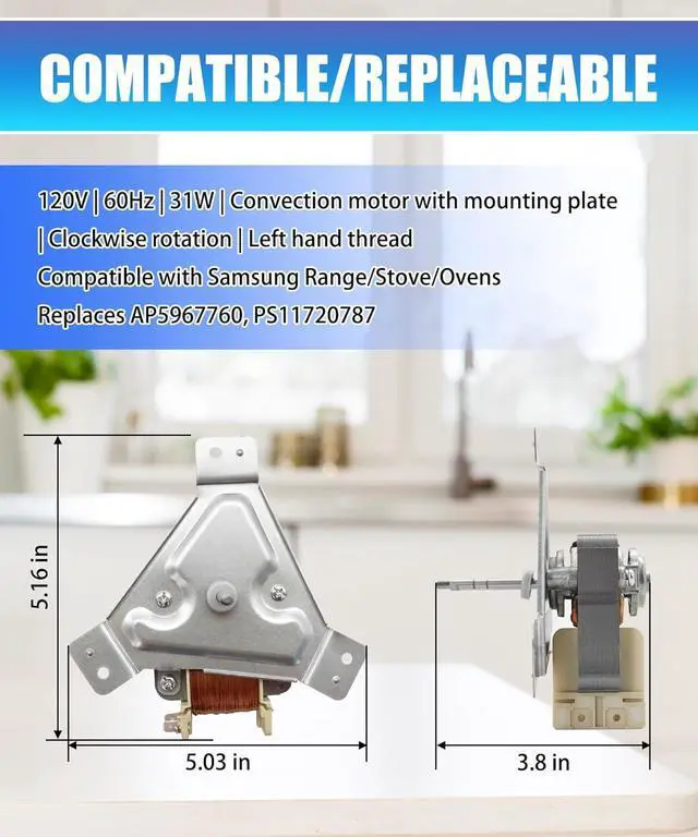 Replaces Part Number: Replacement motor compatible with Samsung OEM DG96-00110E cooktop/stove/ovenReplaces AP5967760, PS11720787