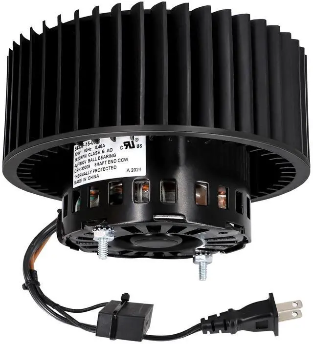 The 8663RP Blower Motor Technical Specifications Volts: 120 V, Amps: 0.48 A, Cycles: 60 Hz, RPM: 1620, Wheel Size: 5 1/2" x 2 1/8", Rotation: CCW, Wire Length: 9" with 2-prong.