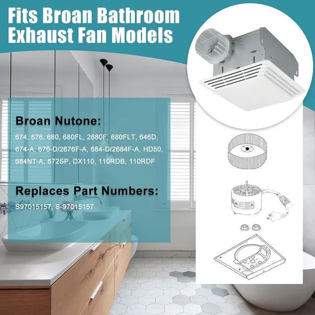 Compatibility S97015157 Bathroom Exhaust Blower Fan Motor Replacement for BroanNuTone 674, 680, 680FL, 680FLT, 676-D.