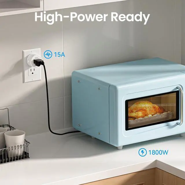 15A High-Power Capacity - Rated at 15A (max 1800W), it effortlessly powers high-energy devices like space heaters and water heaters without overload risks, balancing safety and performance.