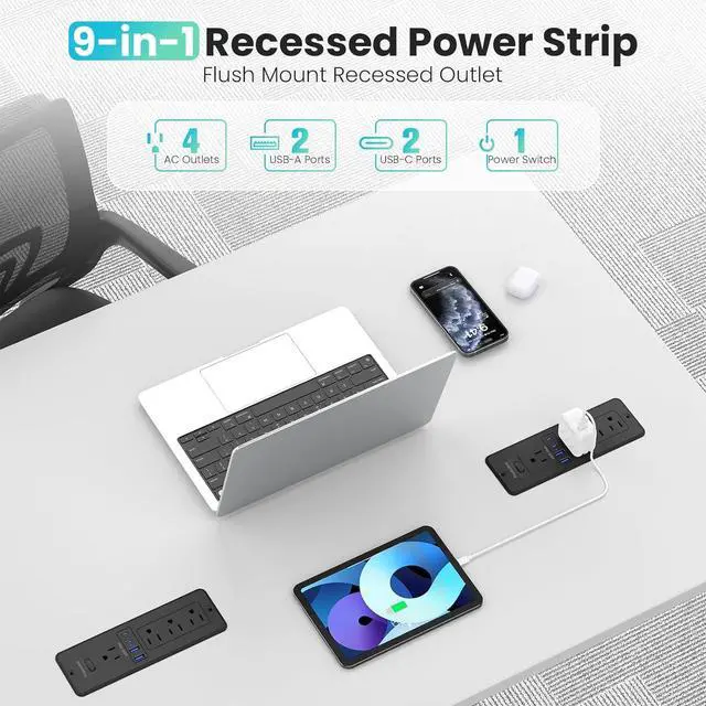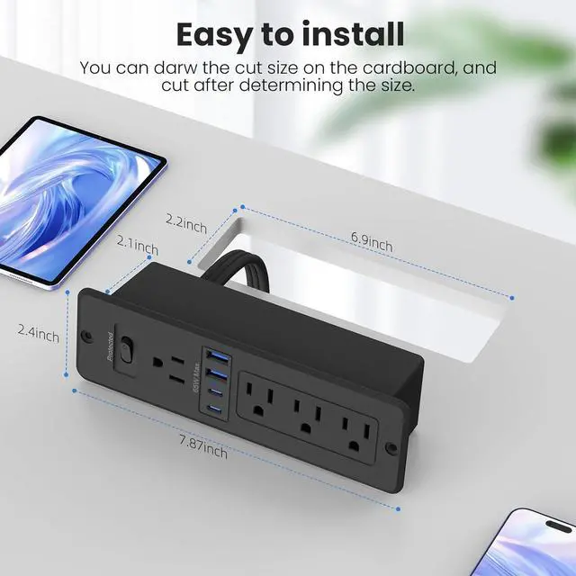 Built-In Furniture Installation: Transform desks or drawers with a recessed outlet design using just a 6.9×2.2-inch cutout. This hidden station creates a minimalist, clutter-free space ideal for offices and modern homes.