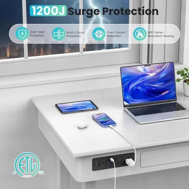 ETL Certified Safety: Features 1200-joule surge protection, flame-retardant PC housing, and 1500W output. Saves energy and ensures peace of mind in high-traffic areas like living rooms and workspaces.
