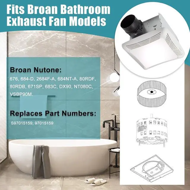 Fit For Broan Nutone Bathroom Exhaust Fan Models - Broan 676-D/2676F-A, 676, 684, 684-D, 2684F-A, 684NT, 684NT-A, 683-C, 683C, 80RDF, 80RDB, 671SP, DX90, NT080C, HD50, VSBP90M. Replaces Part Number: 97015159, S97015159, 99080518, AP5613368, 1930270, 026715139514, 055321610797.