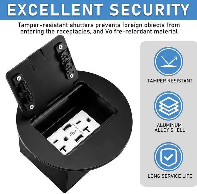 Package Includes: you will receive 1 piece of floor outlet with 20A TR device and adjustable steel box, safe and tamper resistant 125V receptacle allows plug to be hidden, which can be applied for power or data
