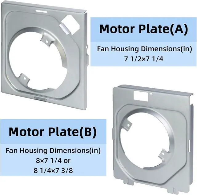 Compatible with Broan Models: The BKR60 replacement motor for Broan 670, 671, 688, 689, EC50, ECF50, EC70, ECF70, ECH600, E050 and E070 with 7-1/2" x 7-1/4" fan housings or 8-1/16" x 7-3/8" housings - does not fit 8" x 8-1/4" housings.