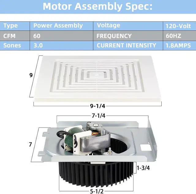 BKR60 Upgrade Kit for Broan-NuTone Replacement Part#: BKR60,S97011723/BP46/BP90 Cover. The BKR60 replacement motor assembly for Broan-NuTone size is 10.75 x 9.31 x 0.75, universal upgrade for Broan 688 replacement motor series fan.