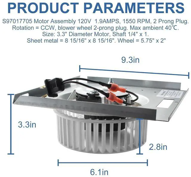 PartNo. The motor assembly is used for Nutone 8663RP partS97017705, Replaces Motor: 86933000/JA2B104N.