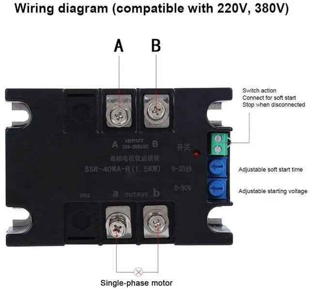 Fit for soft start of water pump, fan, vehicle and ordinary single-phase motor, such motor start module keeps super simple wiring.