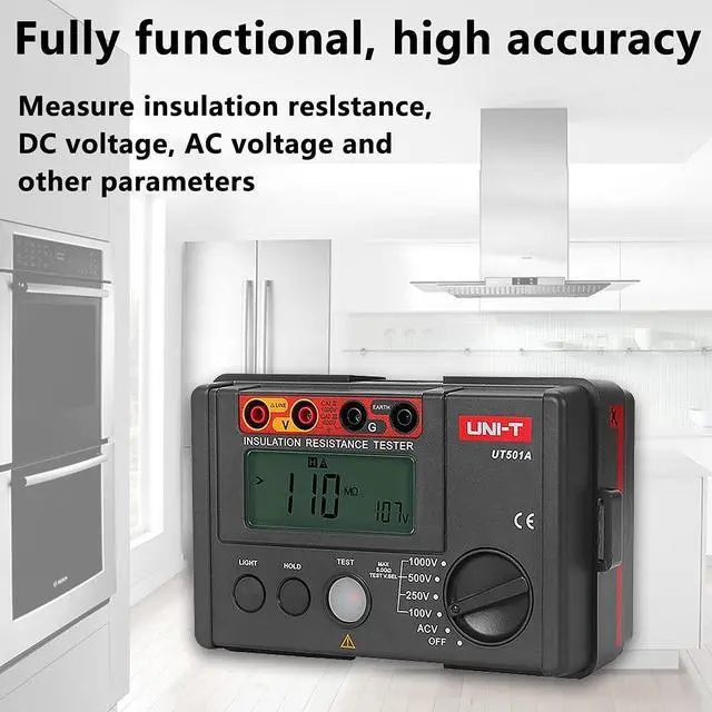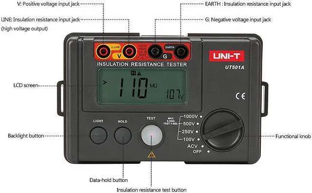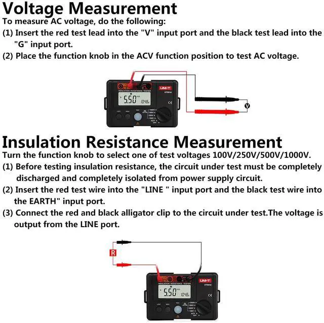 Professional Resistance Tester: The insulation resistance tester Accepts all standard banana plug type connection test leads so you can use your existing meter leads with gator clips etc or use the included test leads which work find also great little meggerohmeter with up to 1000V testing and reads up to 5GOHMS of resistance, Has a 750AC volts setting so you can check to ensure your cables/equipment are de energized for insulation testing safely