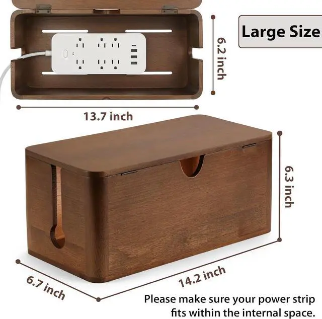 Spacious Cord Management Box: External dimensions: 14.2" L × 6.3" H × 6.7" W; Internal dimensions: 13.7" L × 5.6" H × 6.2" W. Large size accommodates most needs, including power strips, TV cables, CDs, game controllers, and USB hubs. Please note that all measurements are taken manually, so a deviation of about 2mm may occur