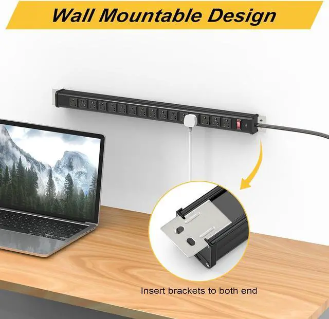 Easy to Vertically/Horizontally Install: Easy to install, to mount it, just slip the base of the power strip over the heads of the fasteners and then tug the strip downward (or upward) to "lock" it into place. Can be easily mounted to wall, wooden furniture, or work bench. ( Mounting Brackets Included).