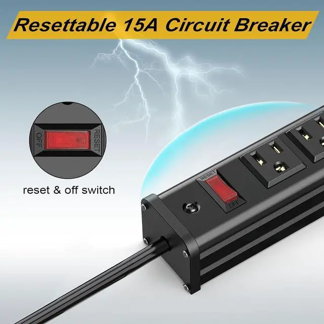 15 Amp Circuit Breaker: Multi outlets power socket with 15 Amp circuit breaker, avoiding overload, overheat, can be better protection of your device, make sure safety when you using. In the event of an overload the circuit breaker will trip protecting your devices and reducing fire risk.