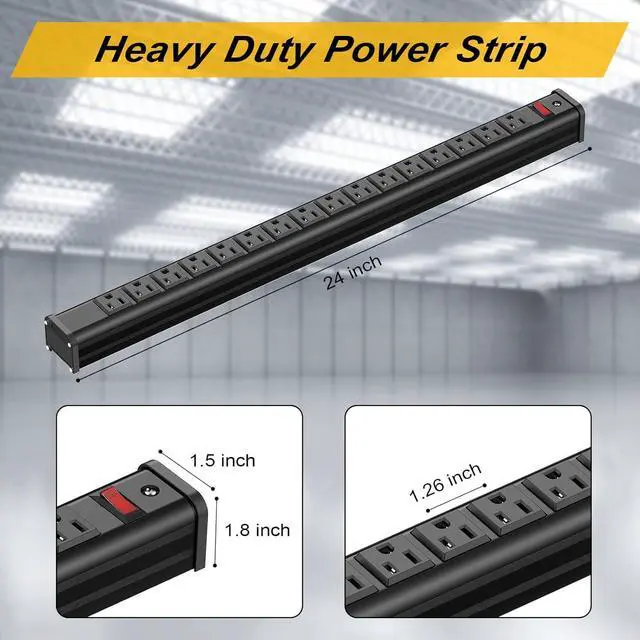Metal Heavy Duty Power Strip: The structure of power strip is made of aluminum alloy, perfect for workshops, enclosed garages, offices and schools, smooth design with multiple outlets, meets your demand to charge many devices simultaneously.