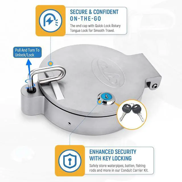 The end cap comes with the rotary tongue lock