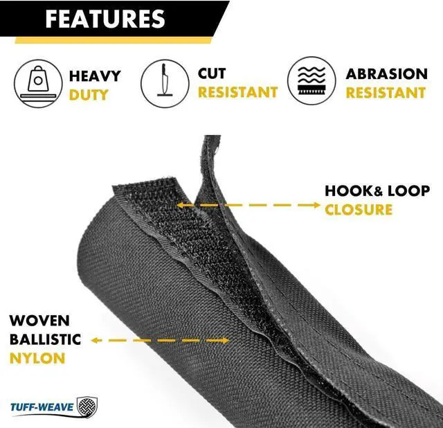 Specs: 2 Diameter | 25 Ft | Woven Ballistic Nylon Material | Black Color | Hook & Loop Closure