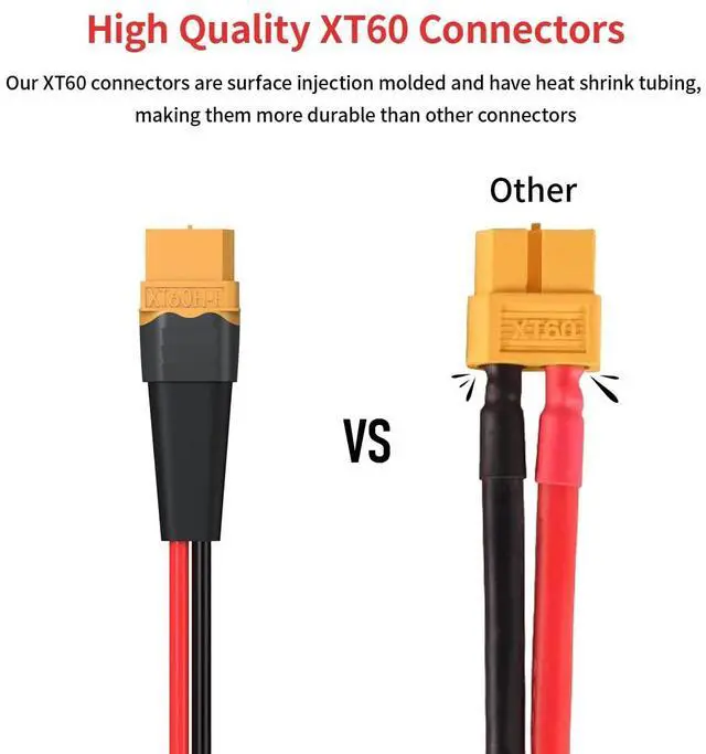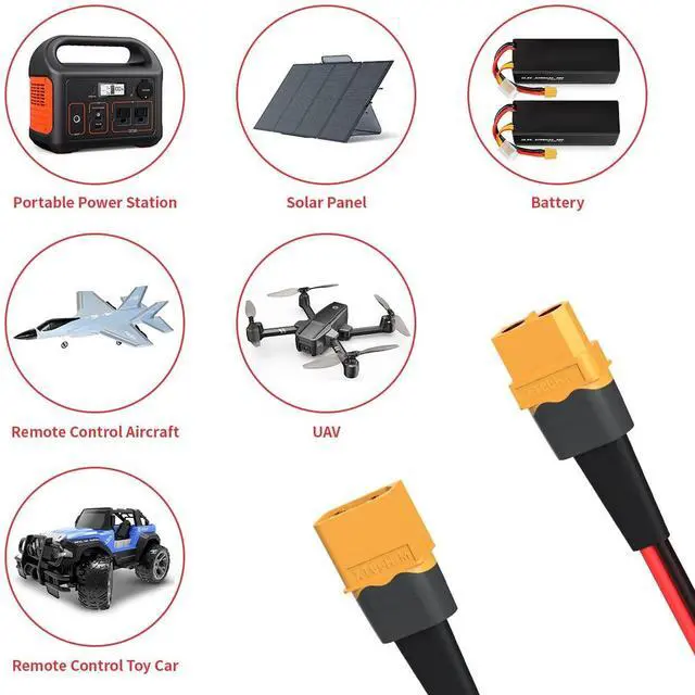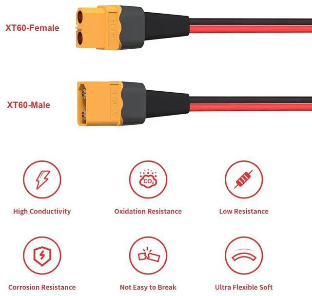 [Wide Application] ELFCULB XT60 Extension Cable easily compatible for connecting and disconnecting of most battery packs are applied in portable power station,remote control toy cars,UAV,RC battery.
