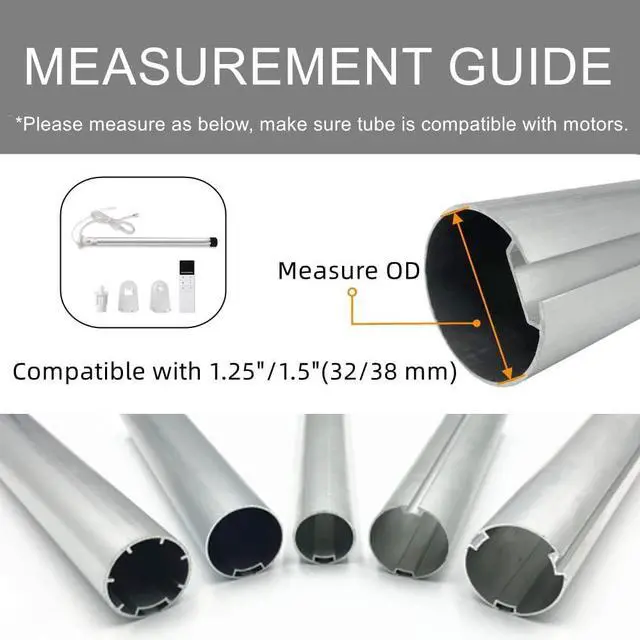 Guide for the Measurement: Blind Motor fits OD: App. 1.25 inch(32 mm),1.5 inch(38 mm), you could message us if you are not sure about the size.